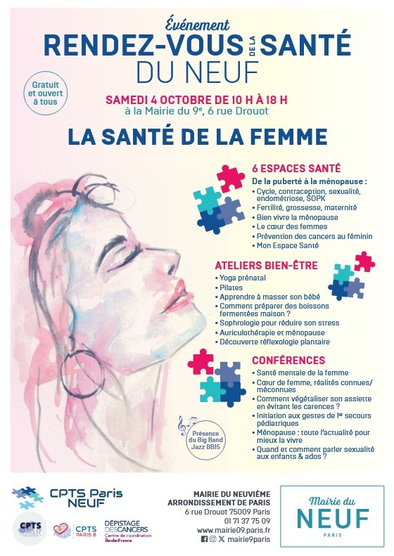 - Le Big Band BB15 vous a donné rendez-vous le 4 octobre 2025 pour deux intermèdes musicaux à partir de 12h30 à l’occasion des « Rendez-vous de la santé du Neuf » le 4 octobre 2025 à la mairie du 9ieme arrondissement (6 rue Drouot)