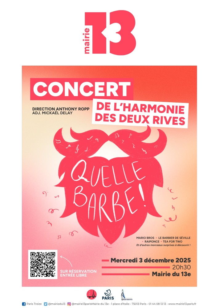 - L'Harmonie des Deux Rives vous a donné rendez-vous le 3 décembre à 20h30 à la mairie du XIIIème arrondissement pour un grand concert.